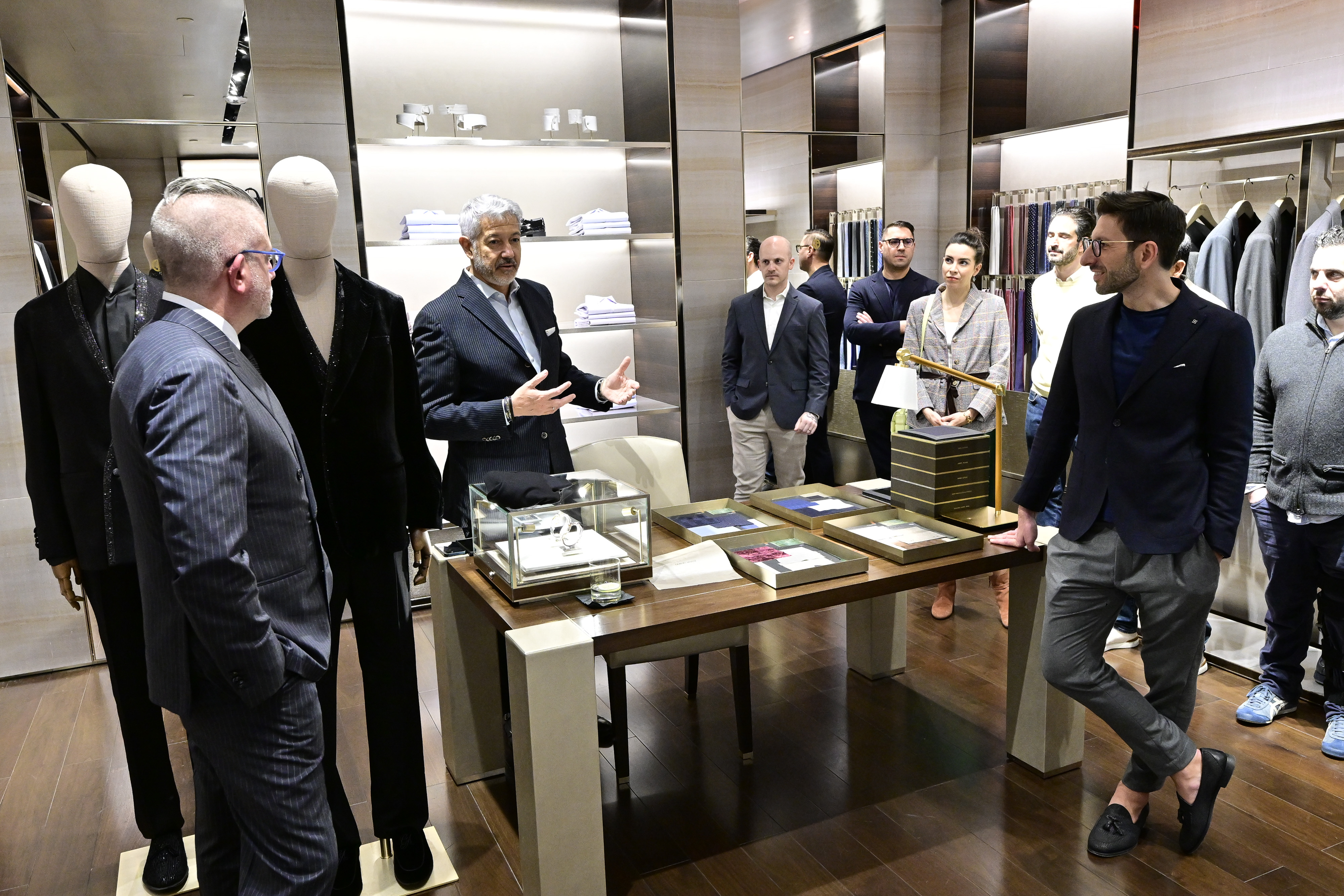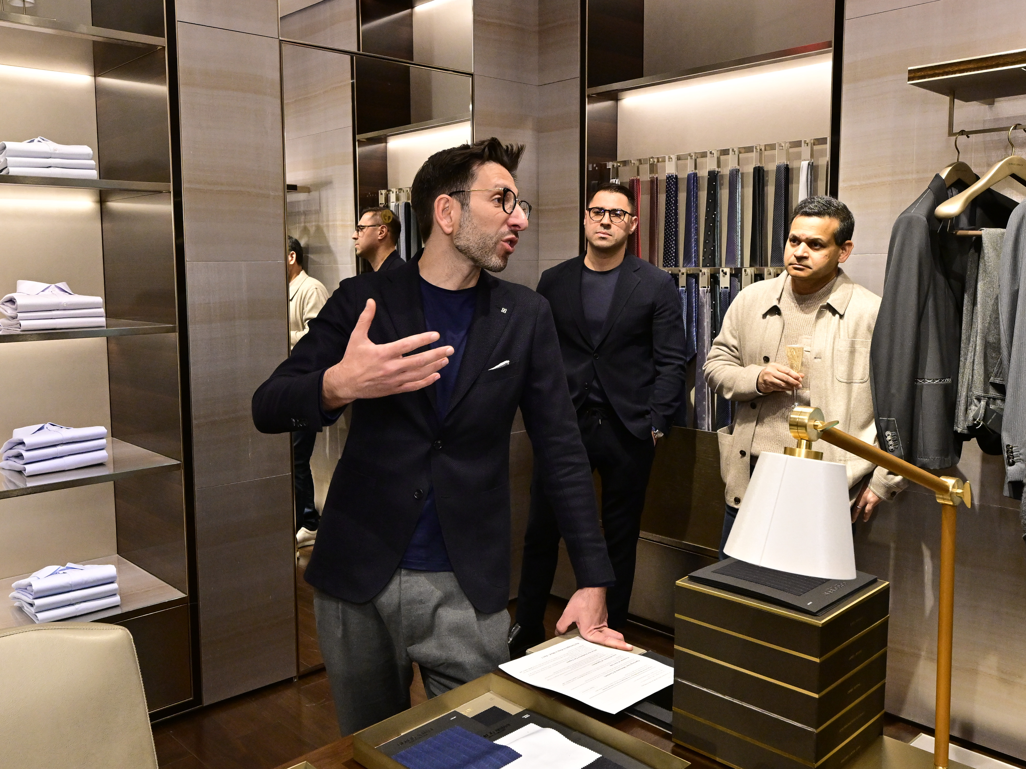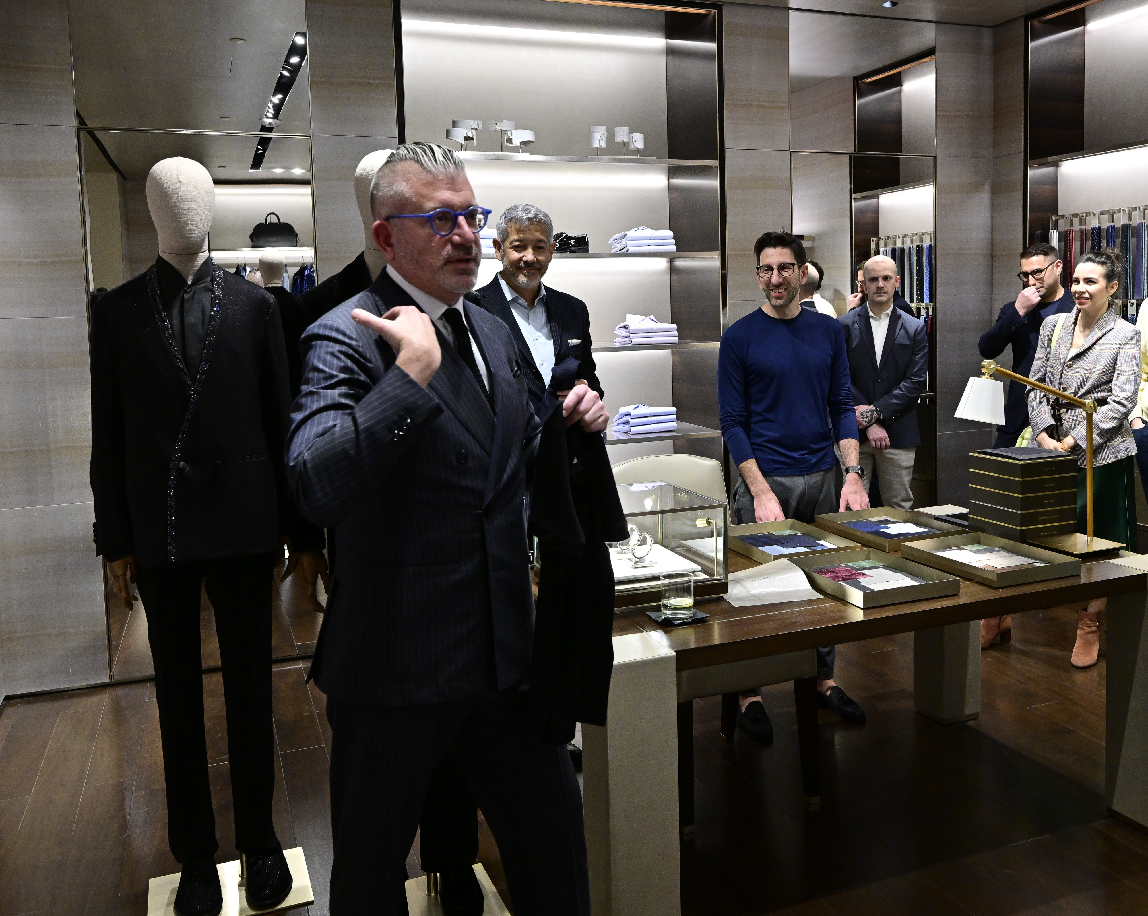 The evening began inside the boutique, in a setting defined by quiet elegance, where guests were invited into a dialogue on personalization across two worlds that share more than they may seem: fashion and automotive. Together with Joshua Schaffel and Andrea Soriani, we explored the principles that guide both disciplines, a sense of effortlessness that is never accidental, craftsmanship as an expression of identity, and the idea that true design is shaped by purpose rather than trend.